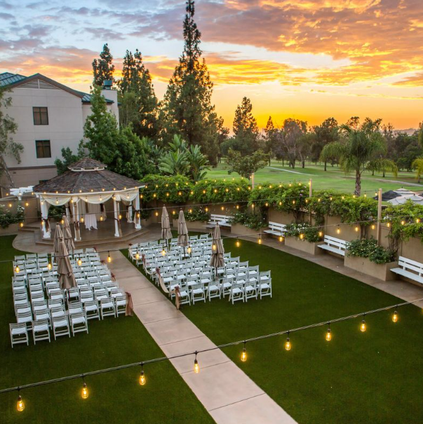 Untuk pernikahan di taman, tentukan waktu yang tepat—biasanya sore mendekati malam—agar penerangan alami memberikan dukungan situasi romantis.